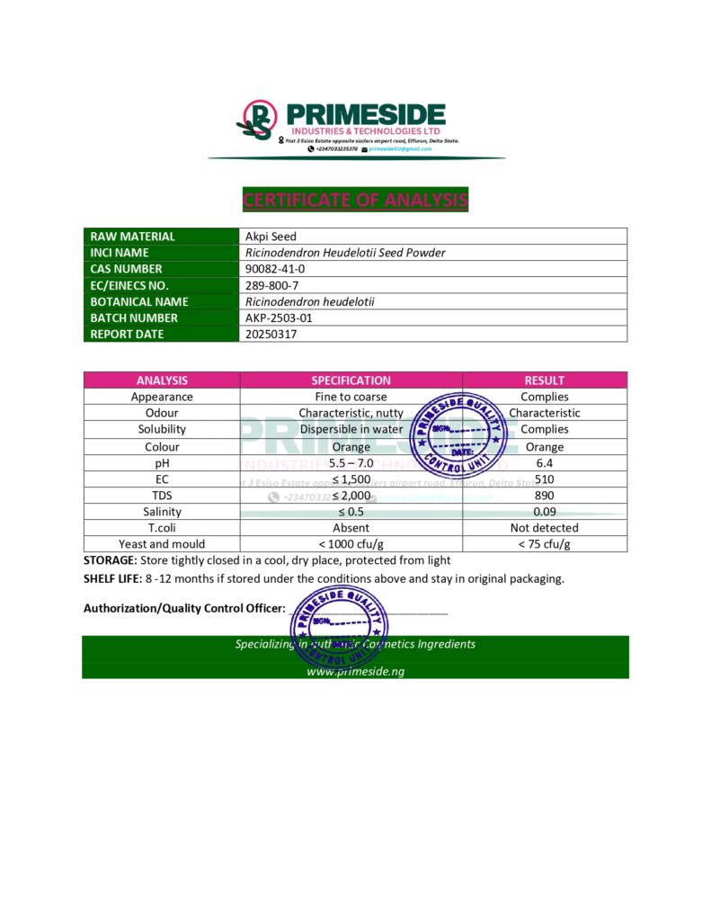 - Rich in Essential Fatty Acids: Akpi seeds contain a high level of essential fatty acids, particularly linoleic acid, which is beneficial for skin health, reducing inflammation, and promoting moisture retention.