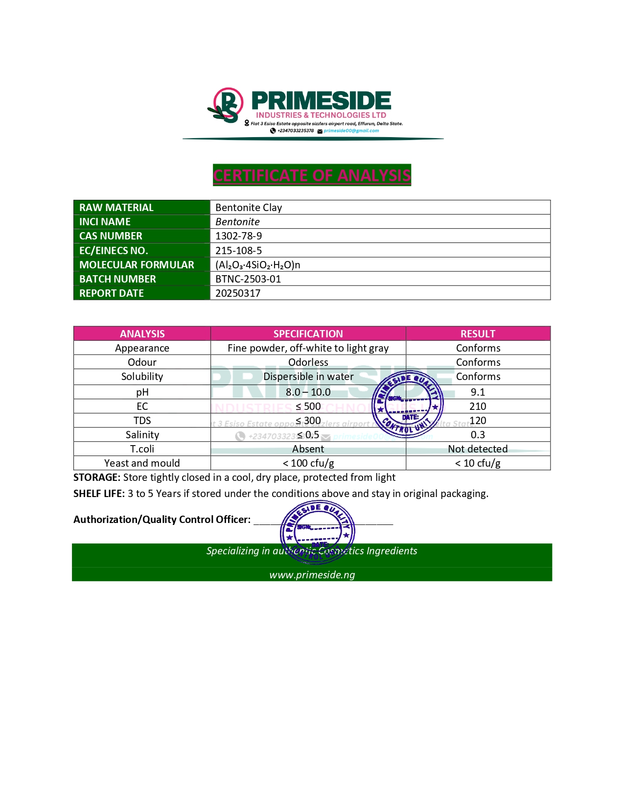 INCI: Bentonite
