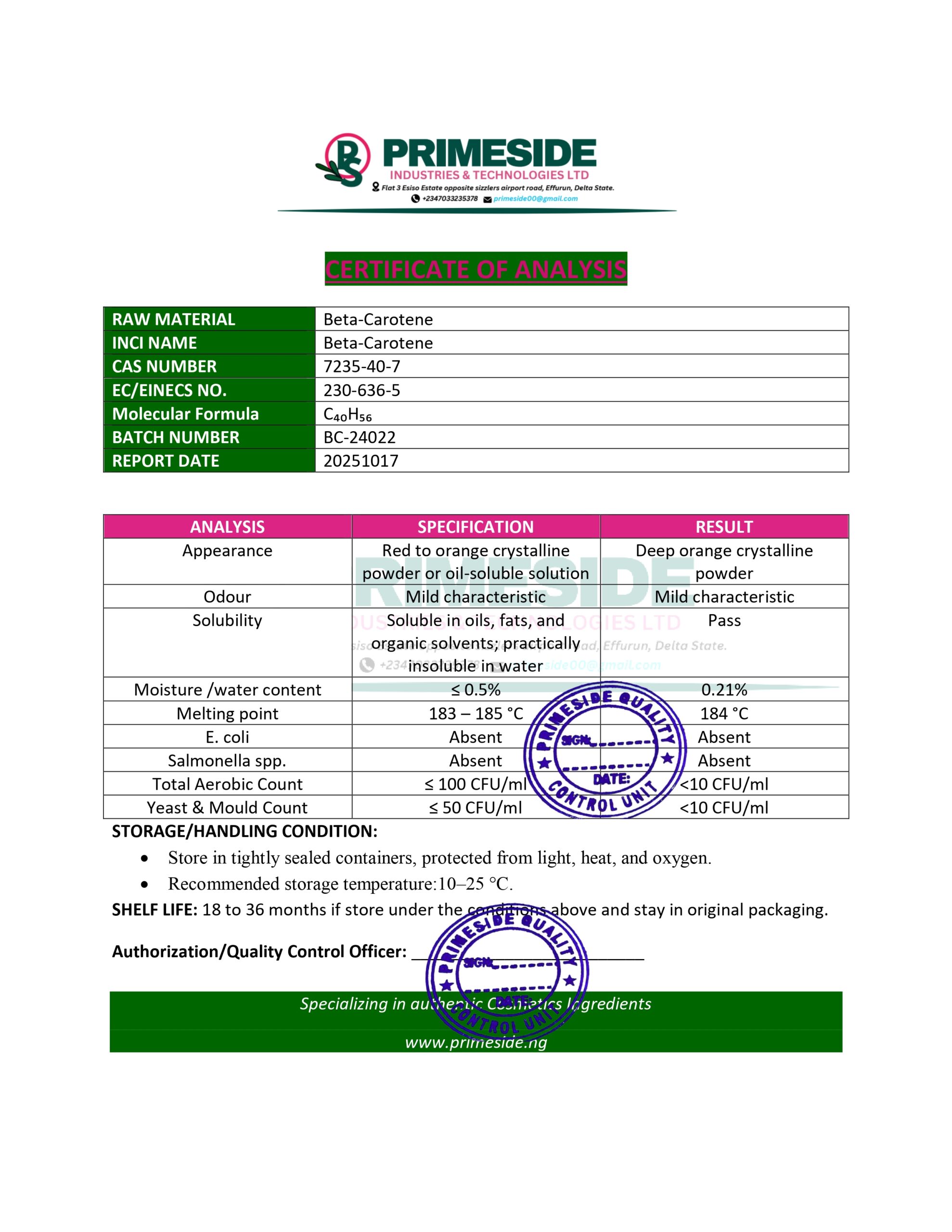 When you think of quality raw material for your cosmetic production, then think primeside.