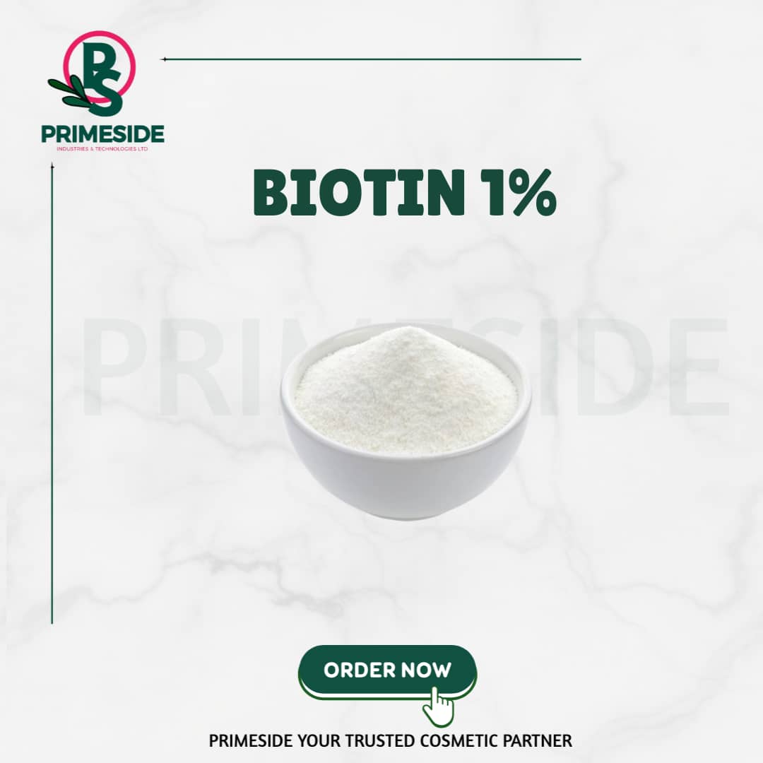 Biotin 1% refers to a formulation where Biotin is present at a concentration of 1%, commonly found in serums, shampoos, conditioners, and other topical cosmetic products.
