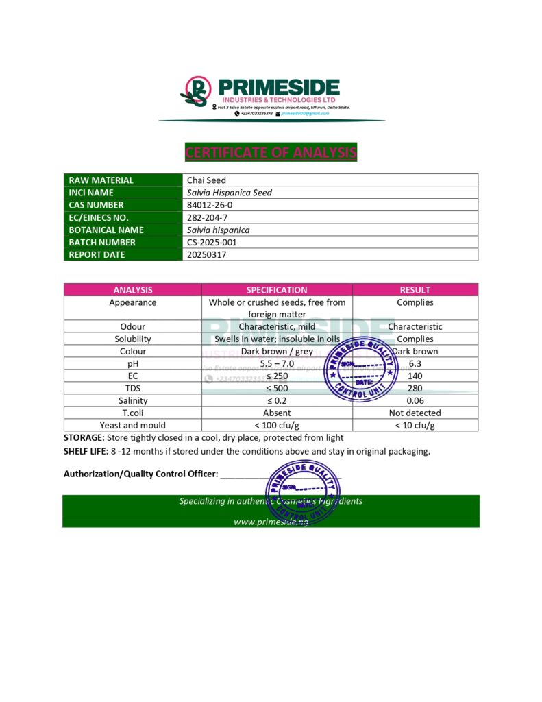 Chia seeds, derived from the plant Salvia hispanica, are known for their numerous benefits, especially in skin care and nutrition. Here’s a detailed breakdown of the key aspects: