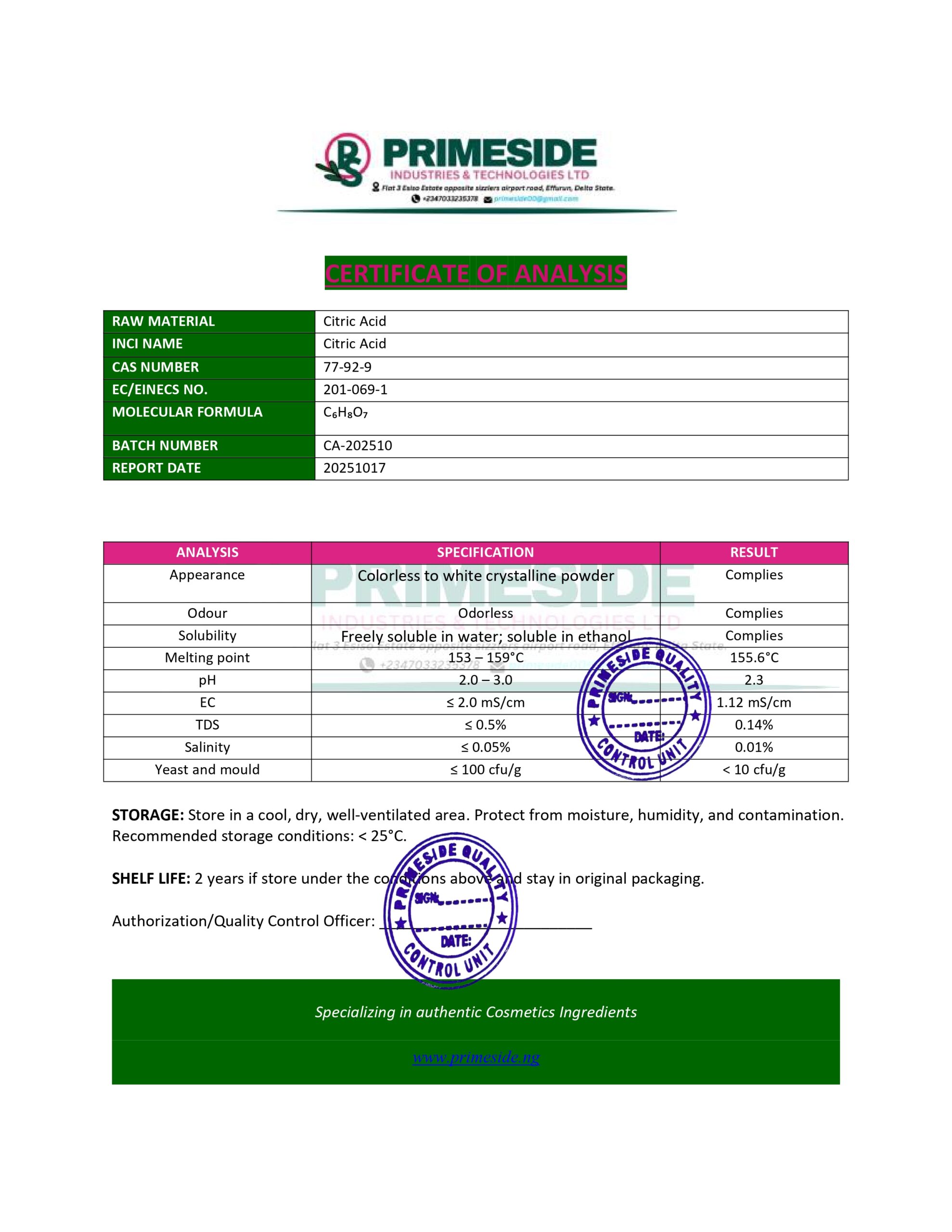 Cosmetics and Pharmaceuticals: Citric acid is used in skincare products to adjust the pH, as well as in medicinal formulations for its buffering properties.