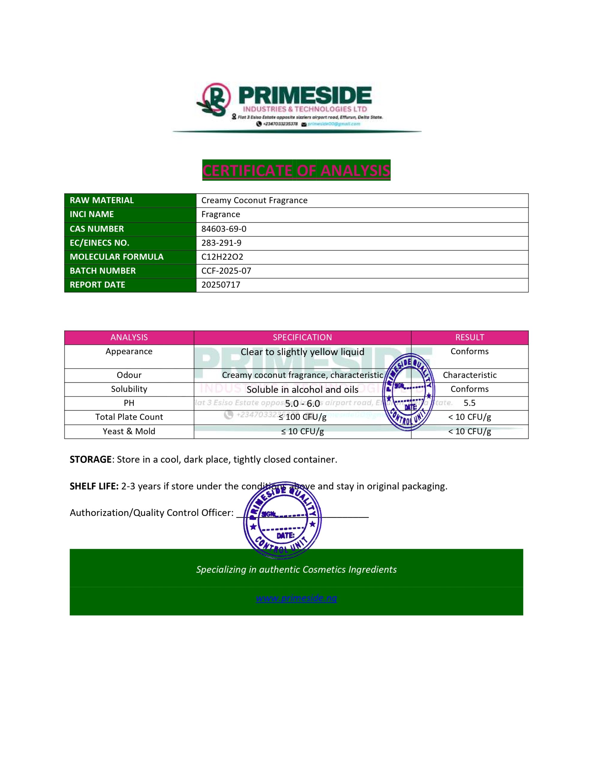 USAGE RATE: cosmetics 0.5% / Candles 5- 10%