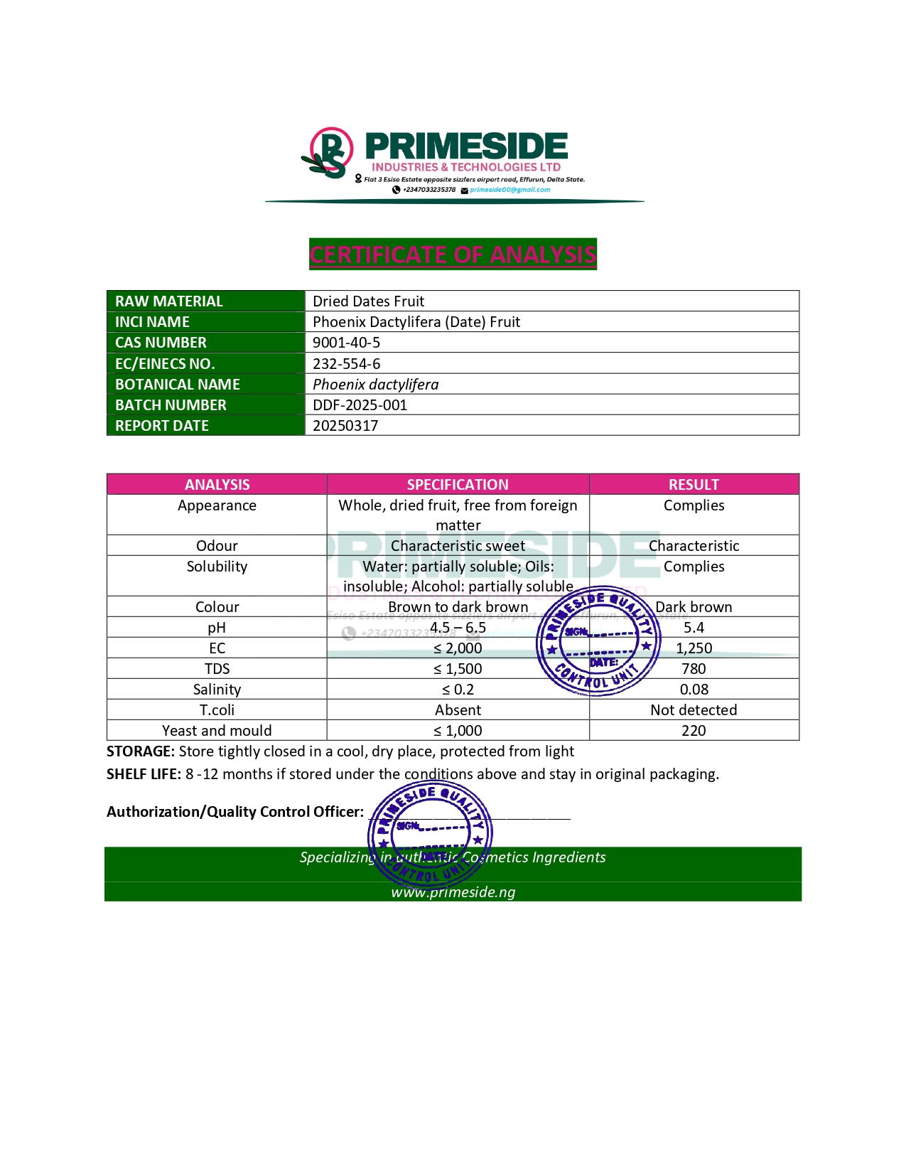 - Skin Care: Date fruit extract and date seed oil are used in moisturizers, serums, and anti-aging products due to their high antioxidant content. They help promote skin hydration, improve elasticity, and combat signs of aging.
