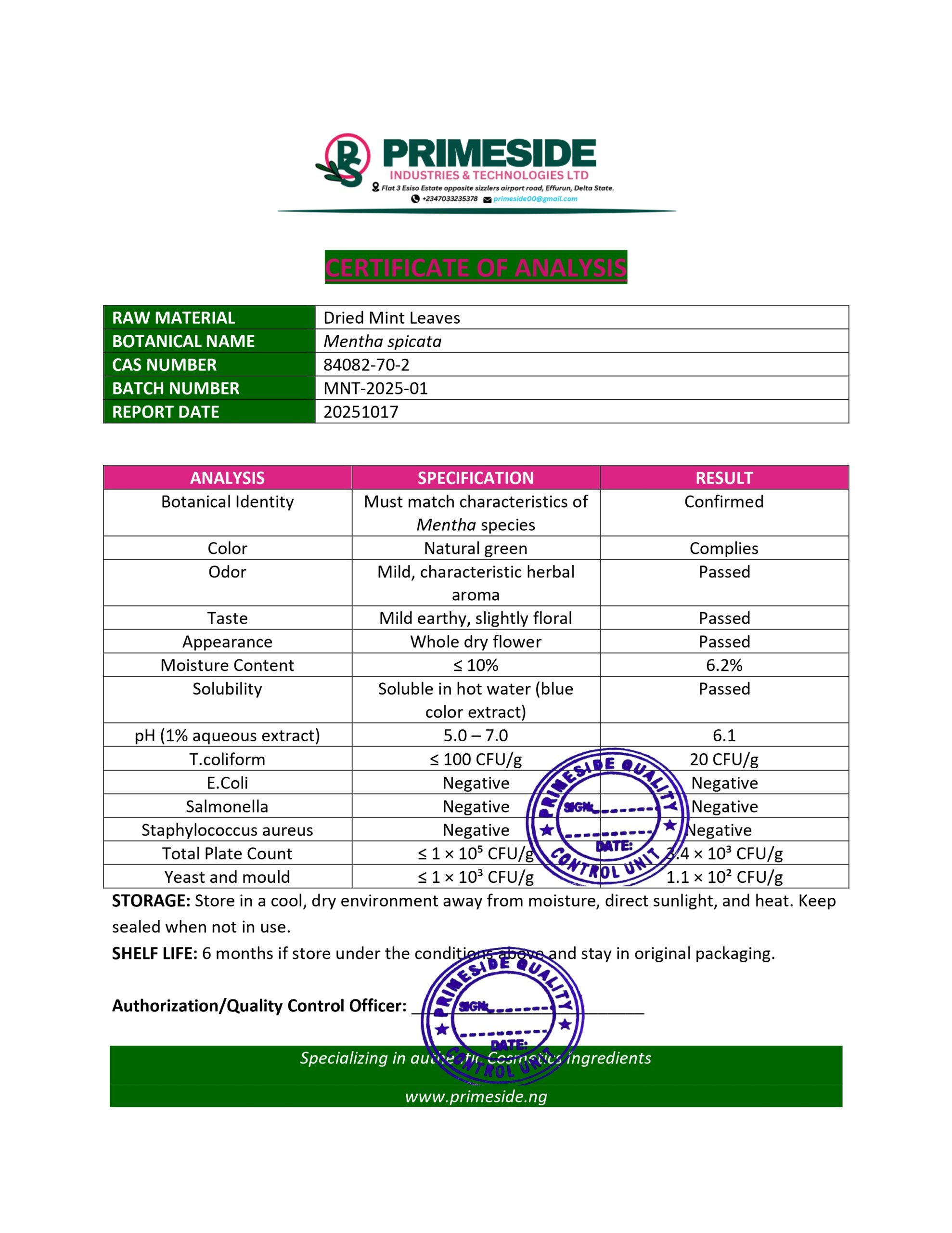 INCI: Mentha piperita (Peppermint) Leaf or Mentha spicata (Spearmint) Leaf