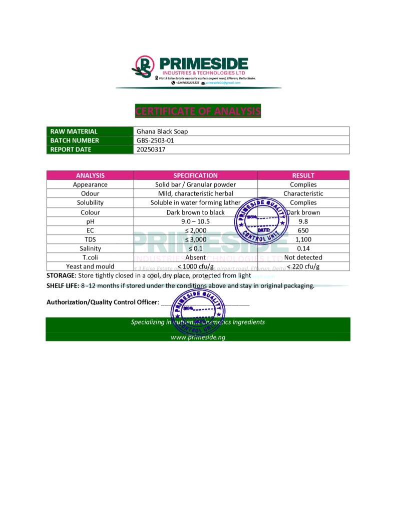 - CAS Number: Varies (as African Black Soap is made from a blend of various plant-based ingredients)