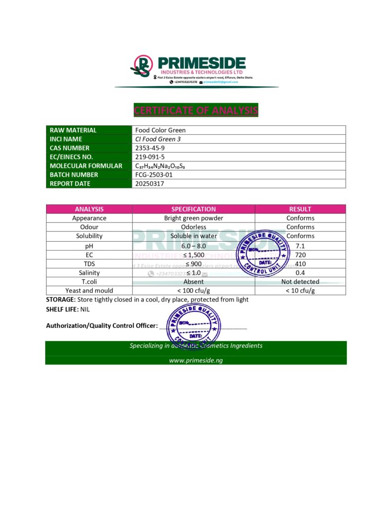 3. Natural Options: For consumers looking for more organic or plant-based products, natural green food colorants from spirulina, matcha, and chlorophyll are excellent choices.