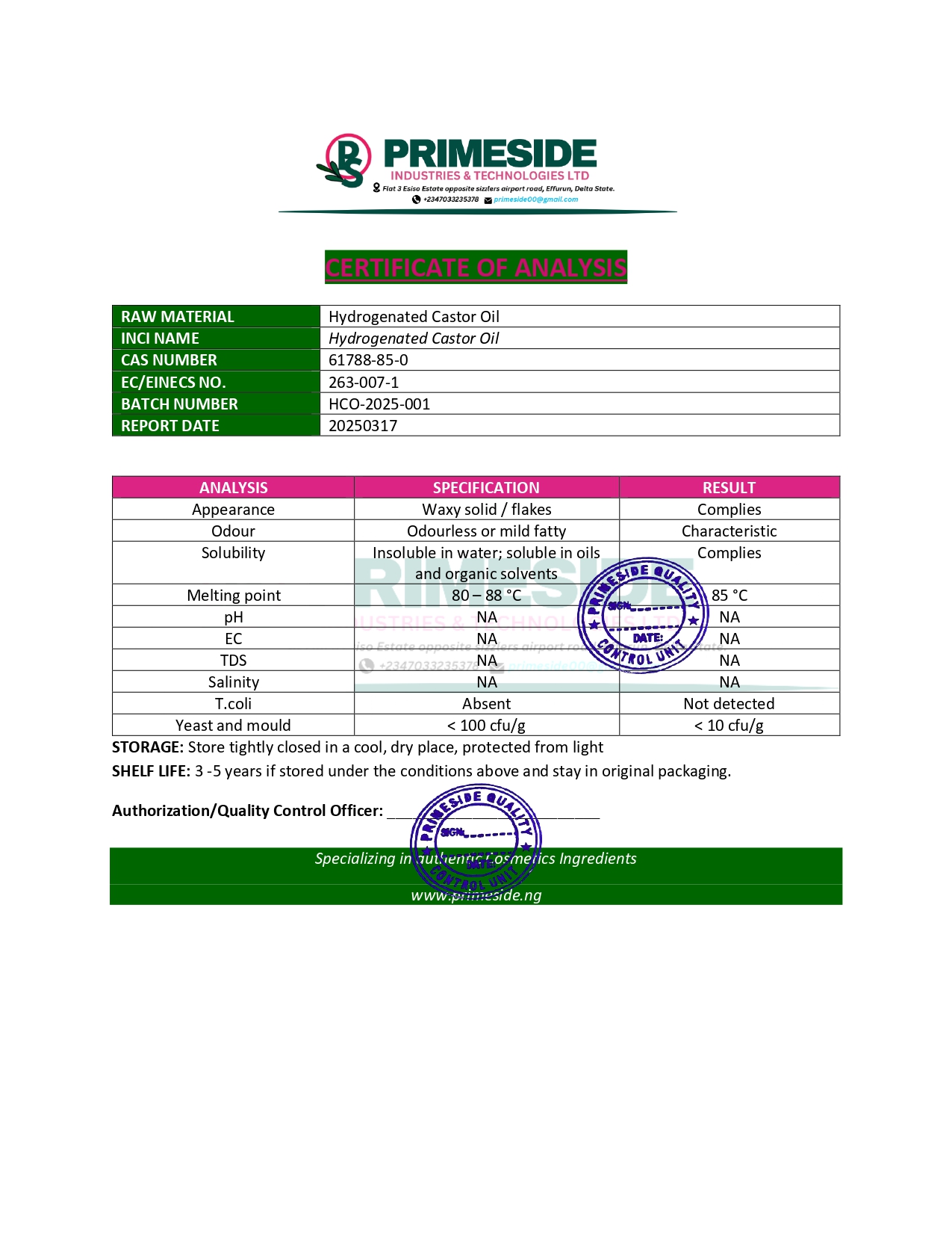 When you think of quality raw materials for your cosmetic production, then think PRIMESIDE