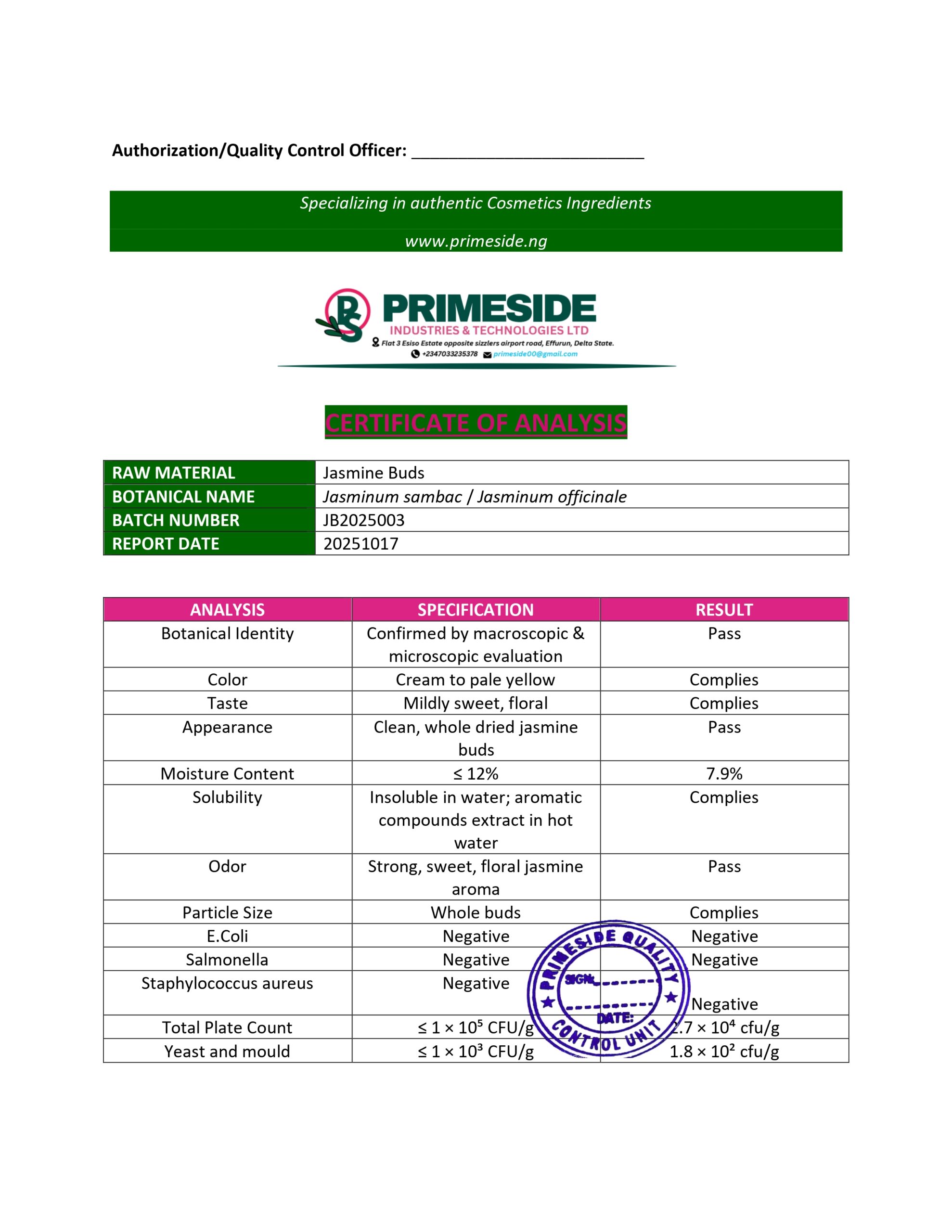 INCI NAME: Jasmine Officinalis