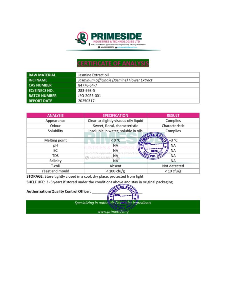 Jasmine Extract Oil is a natural, solvent-extracted oil from the flowers of the Jasminum sambac plant.
