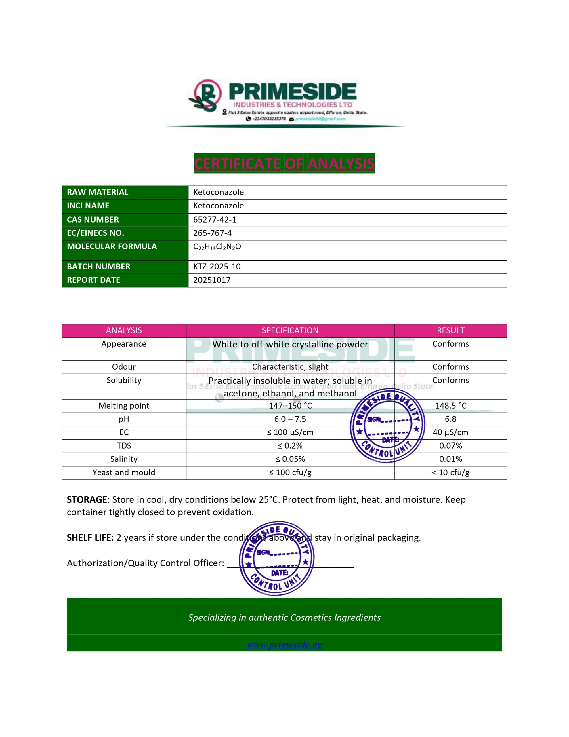 BENEFITS: Broad‑spectrum antifungal, versatile, effective for scalp/skin, endocrine utility, research model