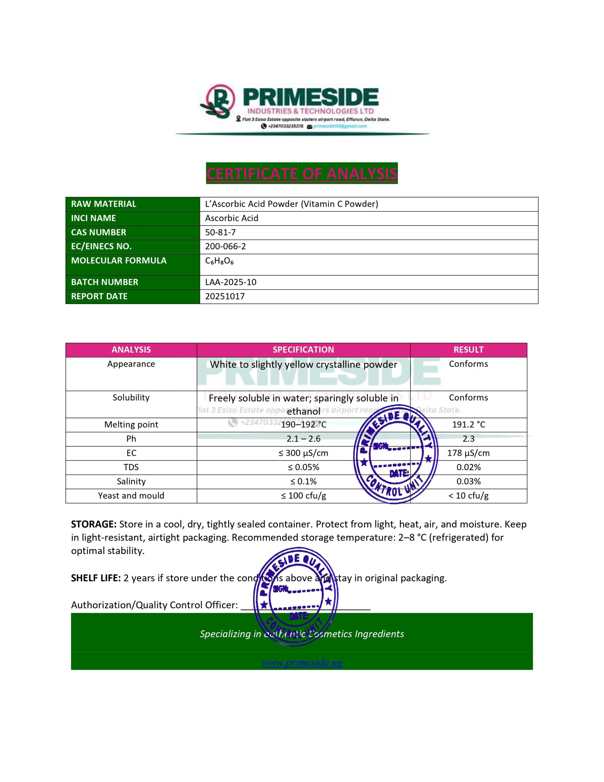 INCI: Ascorbic Acid