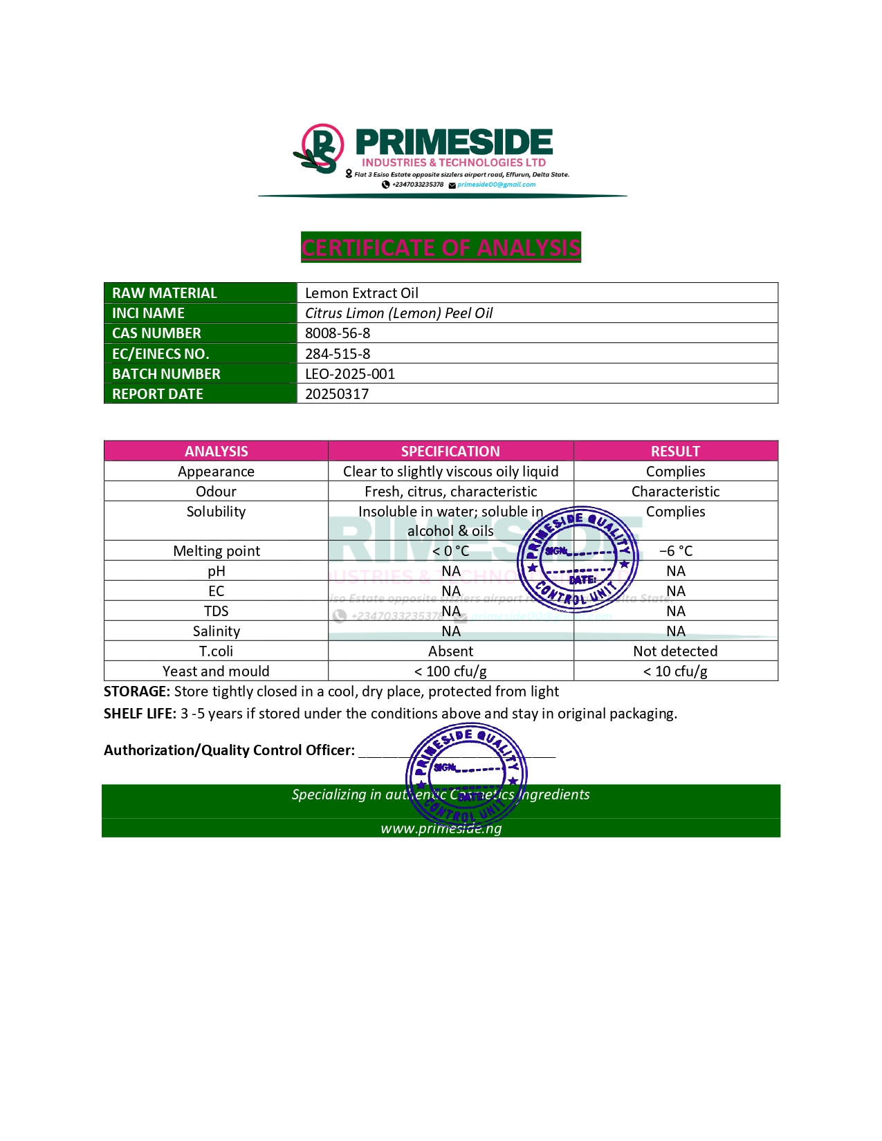 _WHEN YOU THINK OF QUALITY RAW MATERIAL FOR YOUR COSMETICS PRODUCTS,THEN THINK OF PRIME SIDE_