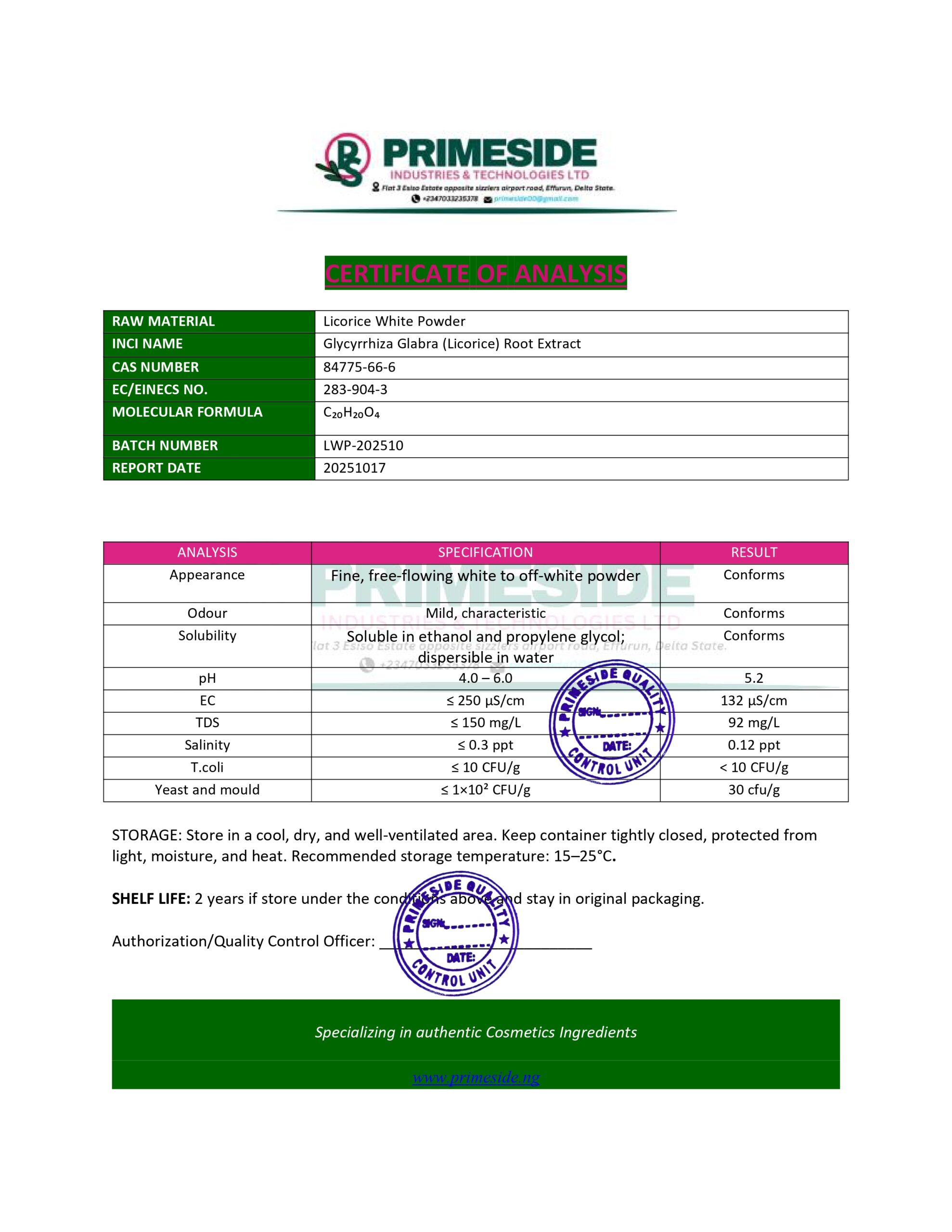 When you think of quality raw material for your cosmetic production, then think primeside.