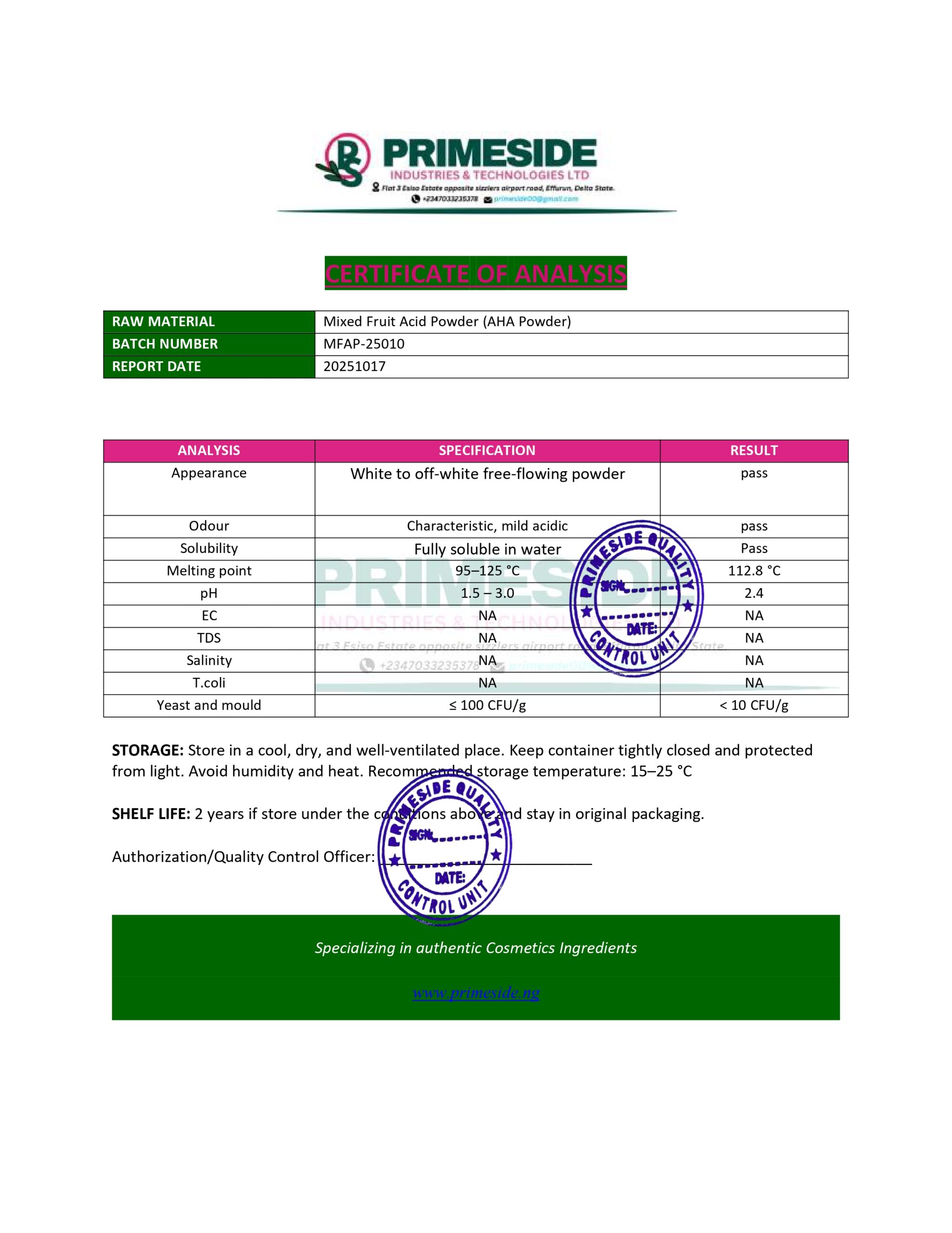 MIXED FRUIT ACID POWDER(AHA POWDER) POWDER