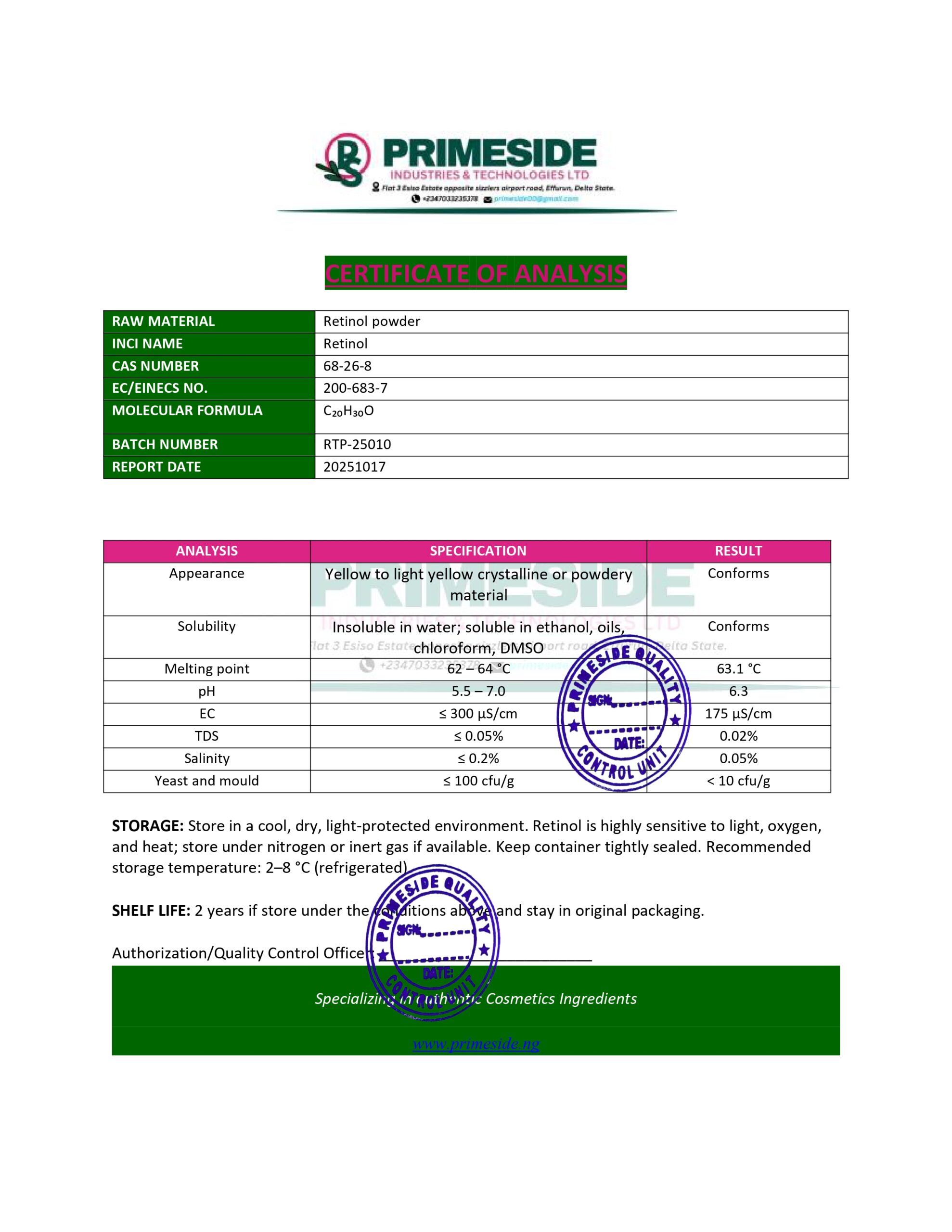 When you think pf quality raw material for your cosmetic production, then think primeside.