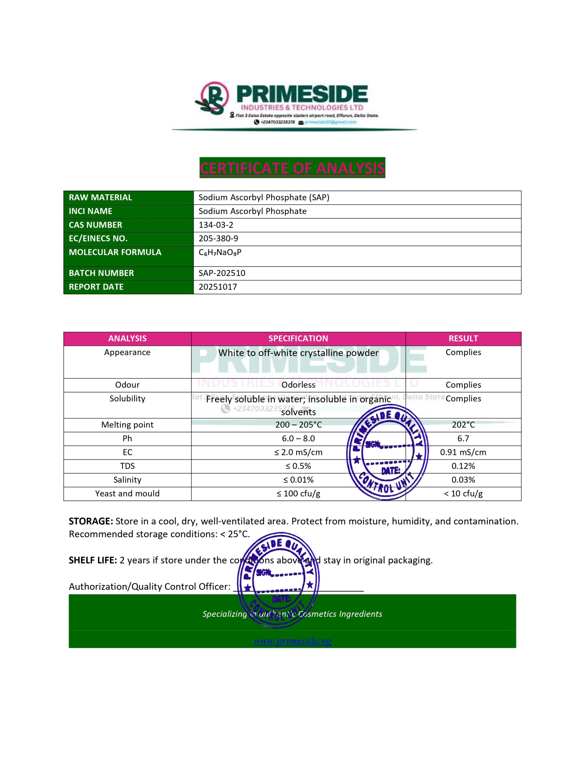 INCI: Sodium ascorbyl phosphate