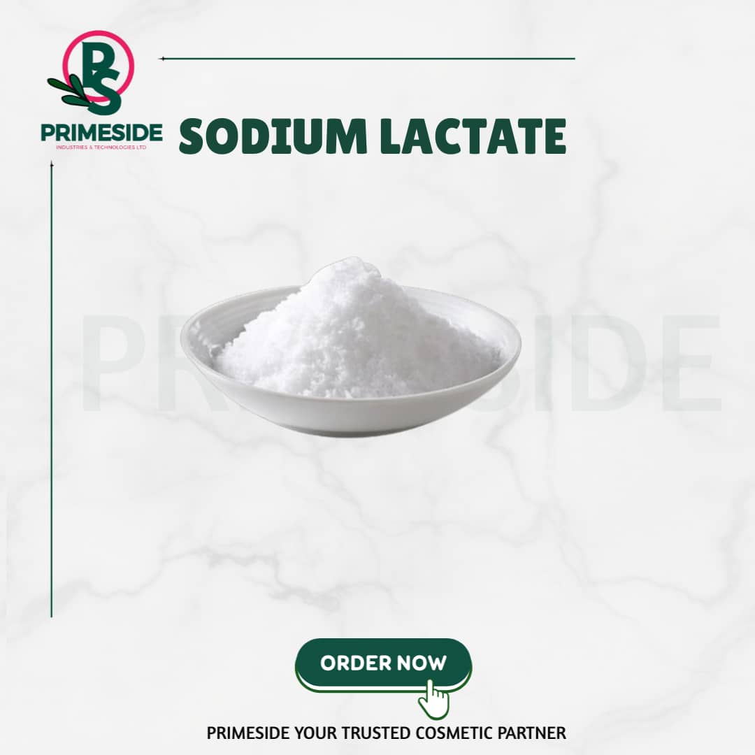 Sodium Lactate Powder is the sodium salt of lactic acid, which is a naturally occurring compound found in the body and in various foods. It is a white, crystalline powder that is typically used as a humectant, pH regulator, and emollient in cosmetic formulations. It is derived from the fermentation of carbohydrates, usually corn or sugar beet.