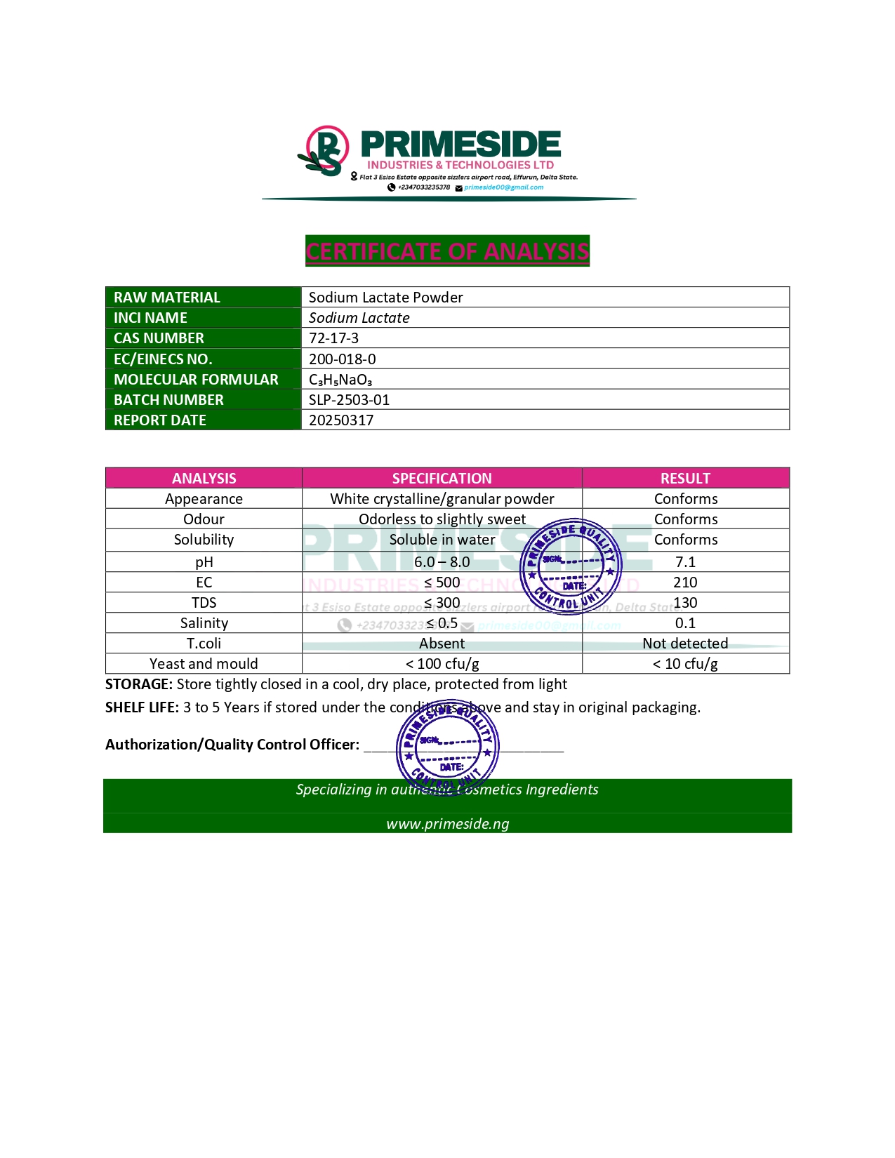 Appearance: Sodium Lactate Powder is typically a white, odorless, crystalline powder.