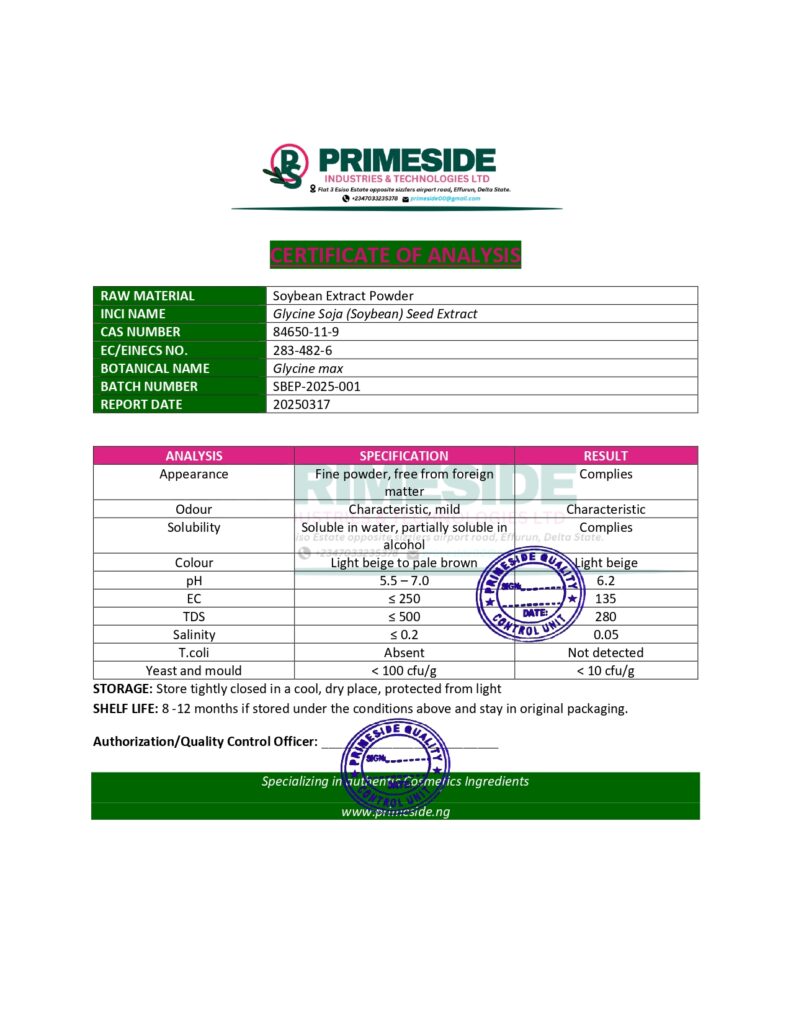 • Soybean Extract – Glycine Soja (Soybean) Extract