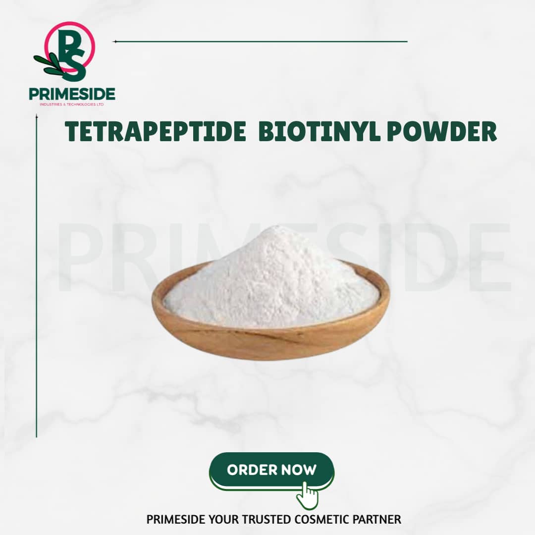 A tetrapeptide biotinyl refers to a short chain of four amino acids (a tetrapeptide) that is attached to a biotin molecule. Biotin, also known as vitamin B7, is often used in biochemical and cosmetic applications due to its ability to bind tightly to proteins and other molecules, and for its role in skin, hair, and nail health.