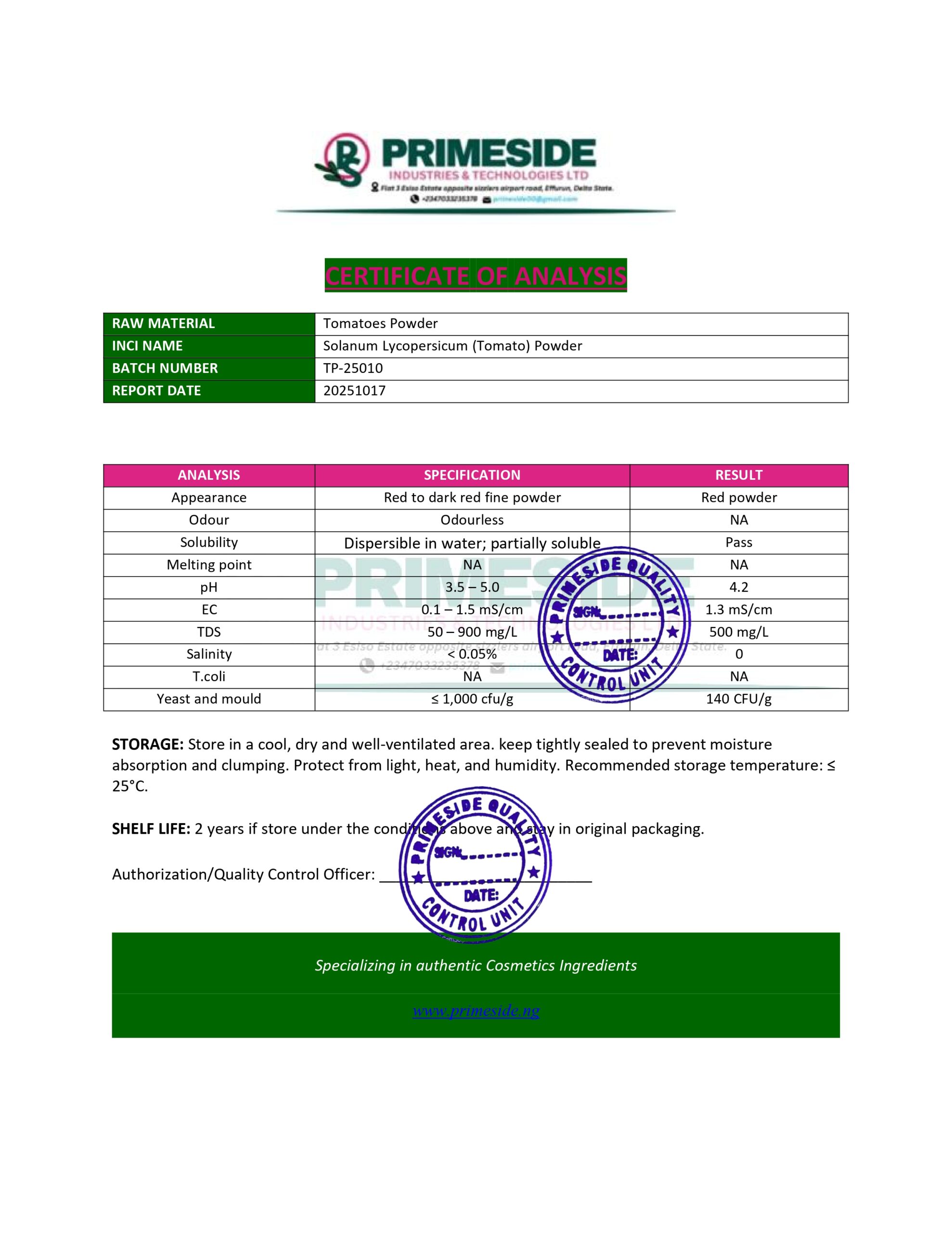 INCI: Lycopersicon esculentum (Tomato) Powder