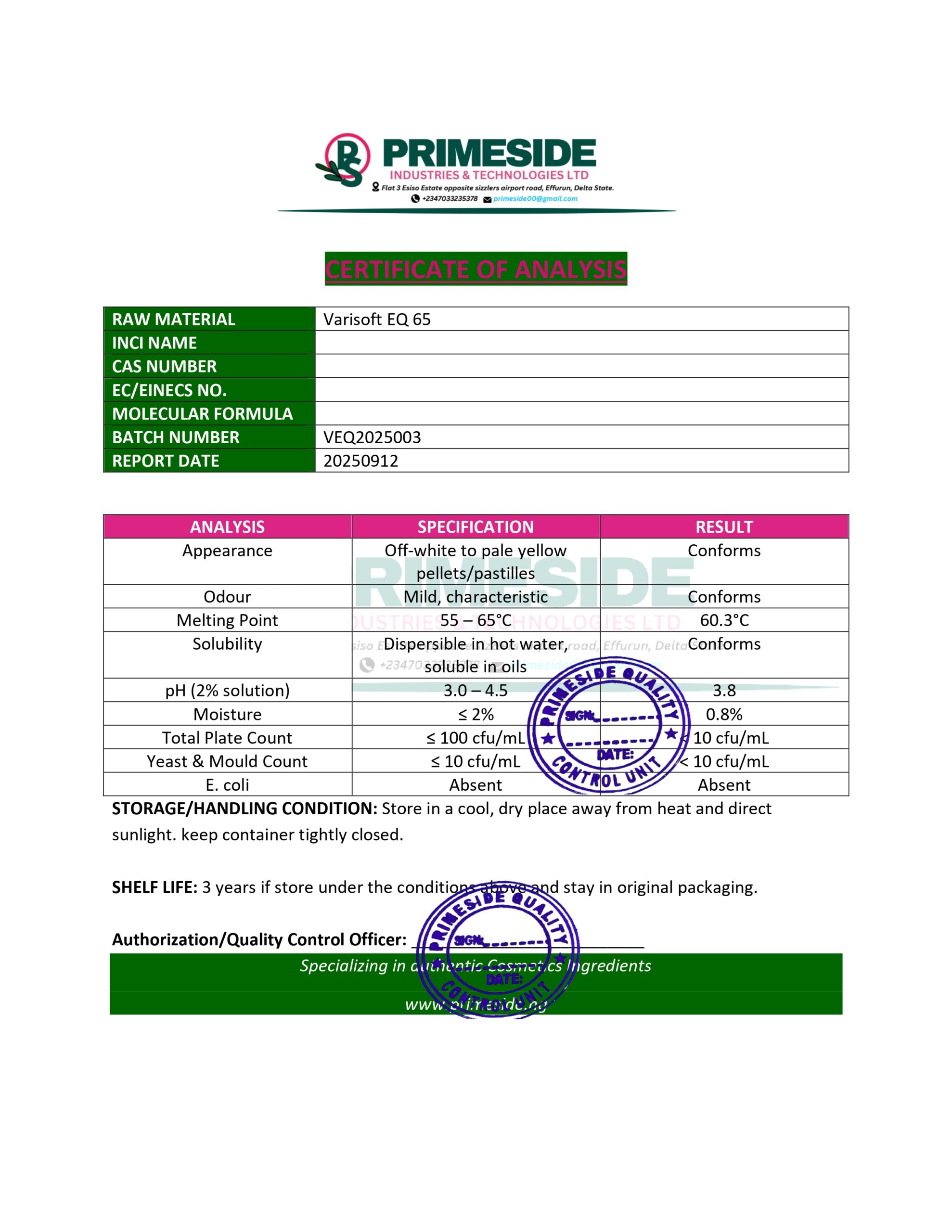 Varisoft EQ 65 is a cationic emulsifier and conditioning agent commonly used in personal care and cosmetic formulations. It is a biodegradable ingredient that provides superior conditioning benefits, making it ideal for hair and skin care products. Varisoft EQ 65 is a blend of two key components: Distearoylethyl Dimonium Chloride (a cationic surfactant) and Cetearyl Alcohol (a fatty alcohol). These components work synergistically to improve product texture, stability, and overall sensory properties.