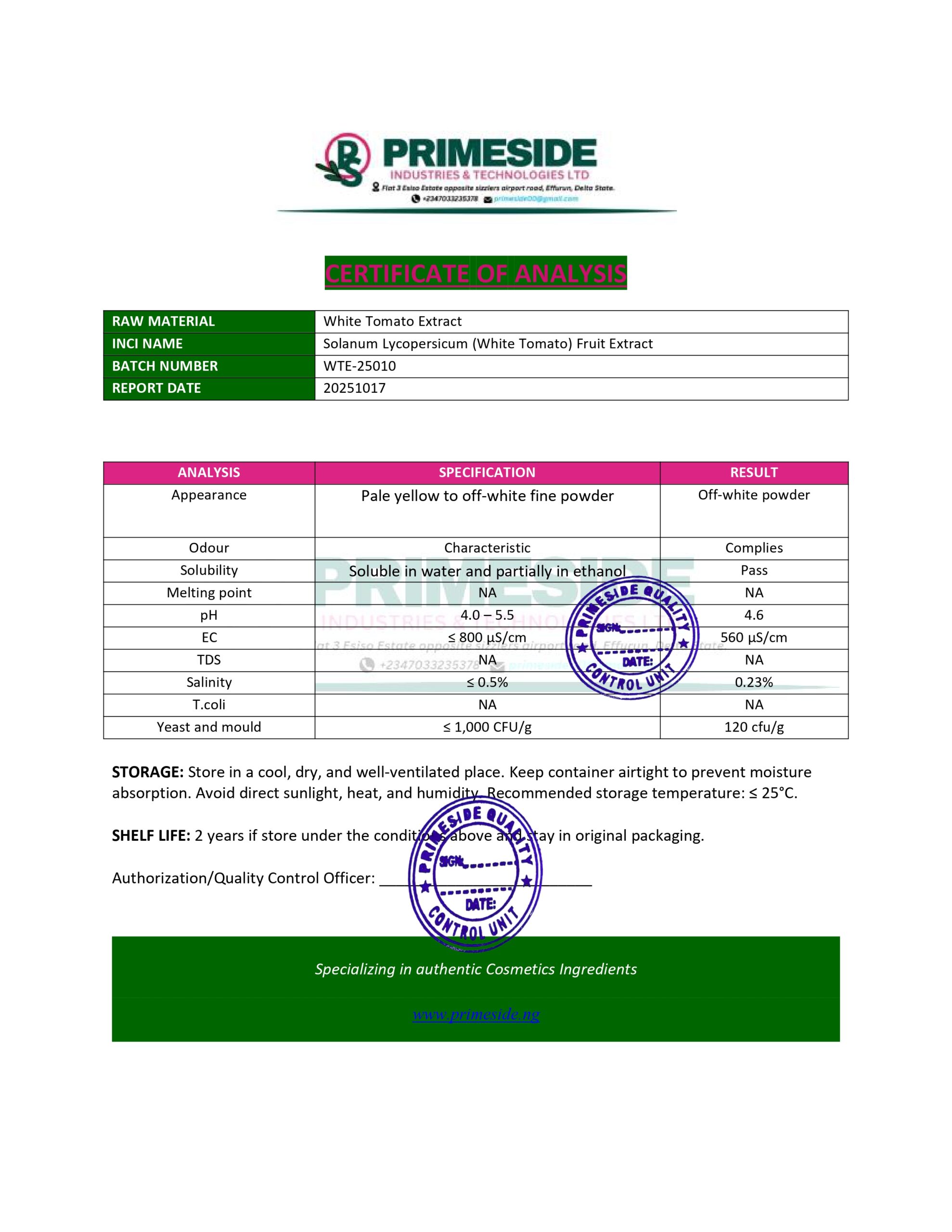 White Tomato Extract is an extract derived from the white or light-colored variety of tomatoes. Unlike traditional red tomatoes, which contain high amounts of lycopene, white tomatoes are typically rich in other antioxidants and beneficial compounds. This extract is known for its skin-brightening and anti-aging properties, making it a valuable ingredient in various cosmetic formulations.