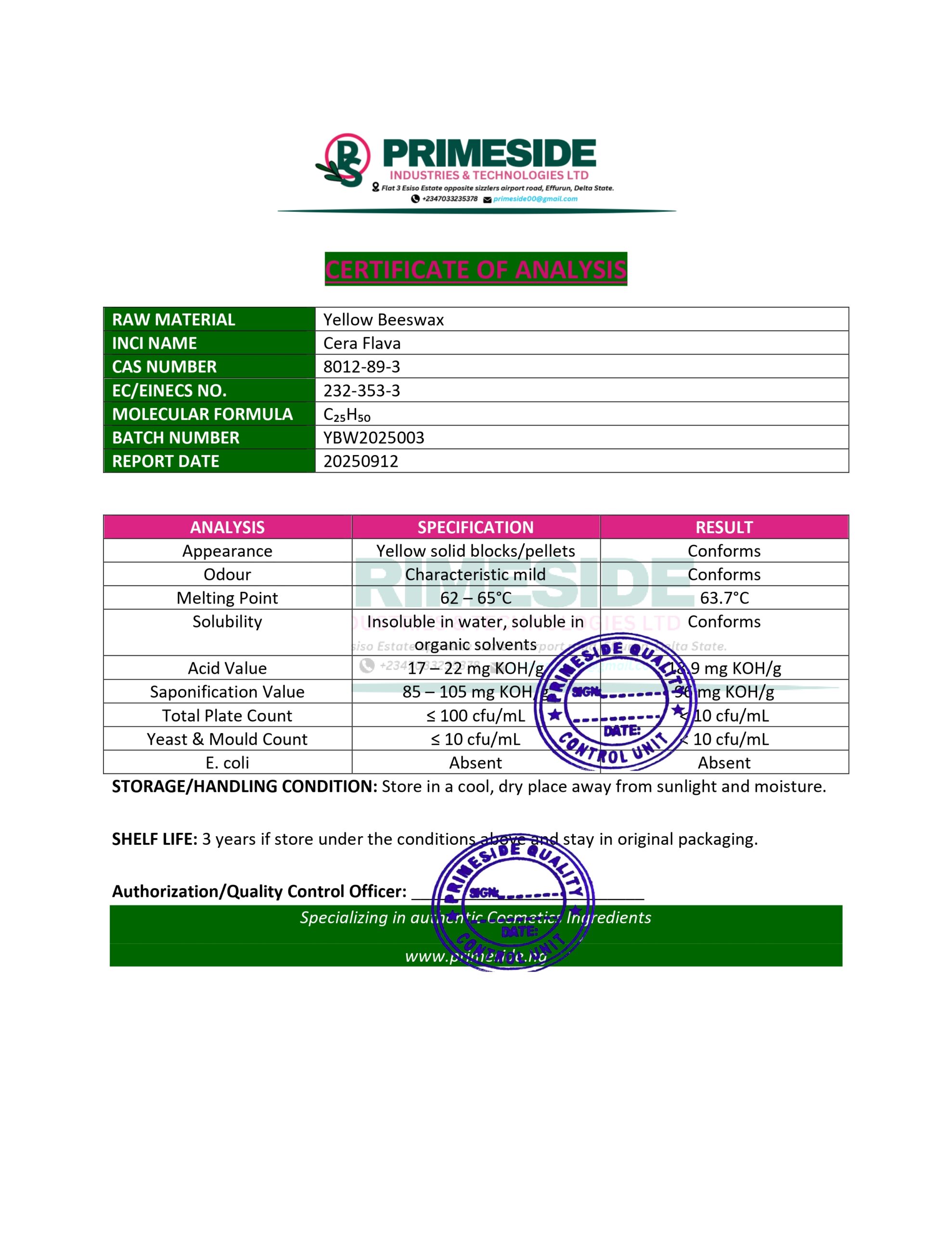 Yellow beeswax is a natural wax produced by honeybees. It is commonly used in a variety of products, including candles, cosmetics, skincare items.